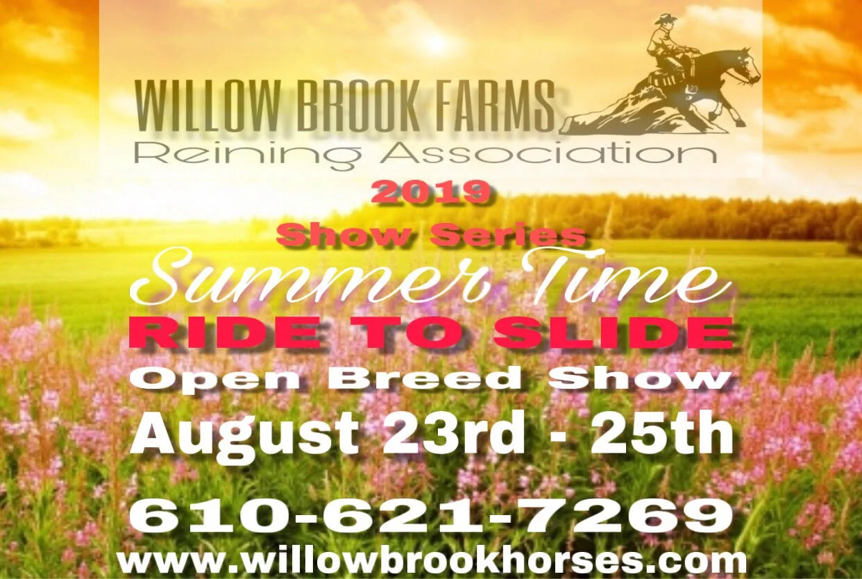 Willow Brook Farms Reining Horse Association 2019 Summer Series Open Breed Summer Time Ride & Slide Weekend